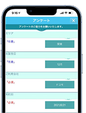 機能一覧feature listお客様とつながる機能 プッシュ通知 会員ログイン ポイント クーポン スタンプ アンケート魅力を発信できる機能 電子カタログ ギャラリー ウエブビュー 多店舗機能 お友達紹介管理に便利な機能 コントロールパネル デザインテンプレート ページ作成機能 プレビュー機能 ログ分析アンケート収集した情報でターゲットを絞って情報配信アプリでアンケートを収集してアプリユーザーの属性情報を取得することができます。 (名前・性別・年代・誕生月・都道府県・未婚既婚の他、10項目の追加が可能。) 取得した属性情報をもとにセグメントプッシュ通知することで、必要な方だけに情報 を届けることができます。 Next ⇨